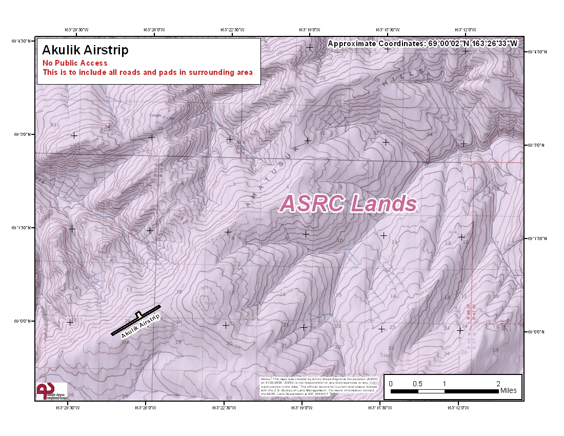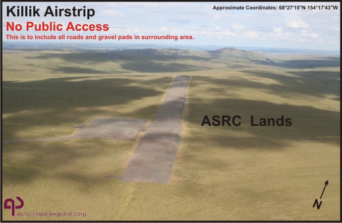 Within ASRC lands in the central and western Arctic are a number of gravel airstrips that are closed to public access. Entry on the following airstrips requires the written consent of ASRC: